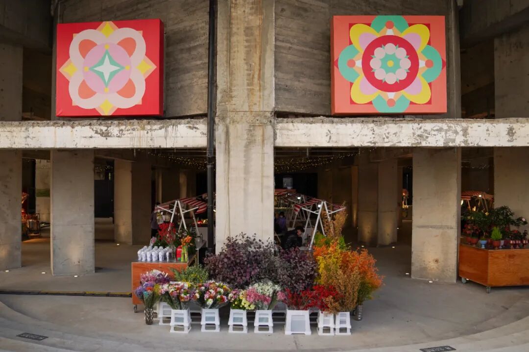 国际人与户外冰场的动感活力相得益彰,南区大筒仓下的万花筒仓市集则为市民提供了慢享时光的休闲空间。作为对工业遗存的创新利用,这场以“万花筒”为灵感的主题市集,汇集了鲜花绿植、花艺文创、宠物用品等20余个特色摊位,不设固定动线的开放式布局,让市民可以随心漫步,邂逅惊喜。