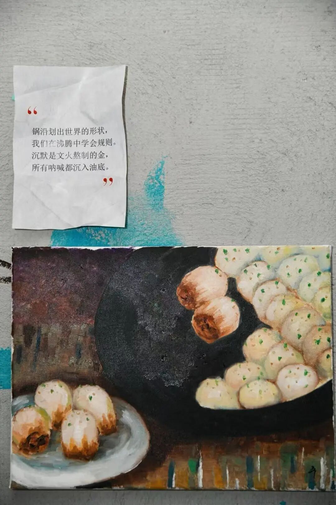 一客生煎、一碗菜肉馄饨,这些看似平凡的美食里,藏着老城厢的温情与海派文化的独特韵味,蕴含了上海人最深沉的烟火情怀。近日,普陀UBOX桃蔓里艺术社区就迎来了这样一场冒着锅气的油画作品展——《煎熬》。