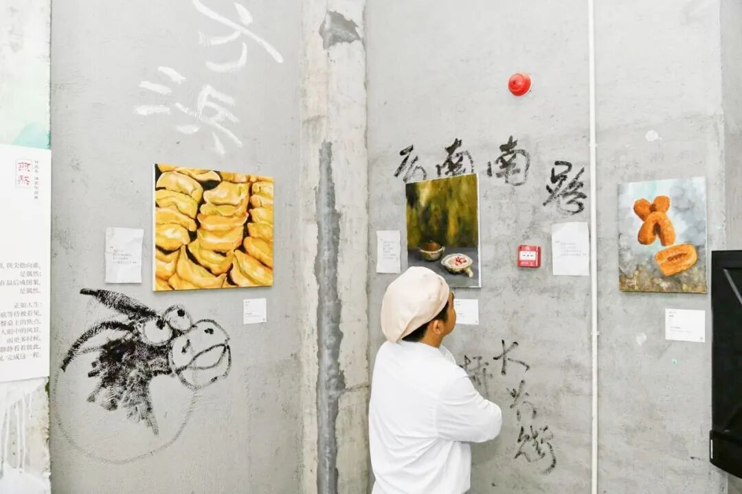 展览中,林三齐还通过真如老街、蒙西菜场、方浜路、云南南路等一系列上海美食马路的名字,在展厅的一方天地内勾勒起记忆中的美食地图。当油画浓彩遇见锅贴的焦香之味,当艺术潜入社区的街巷日常,浓浓的海派氛围,引发了不少观众的共鸣。